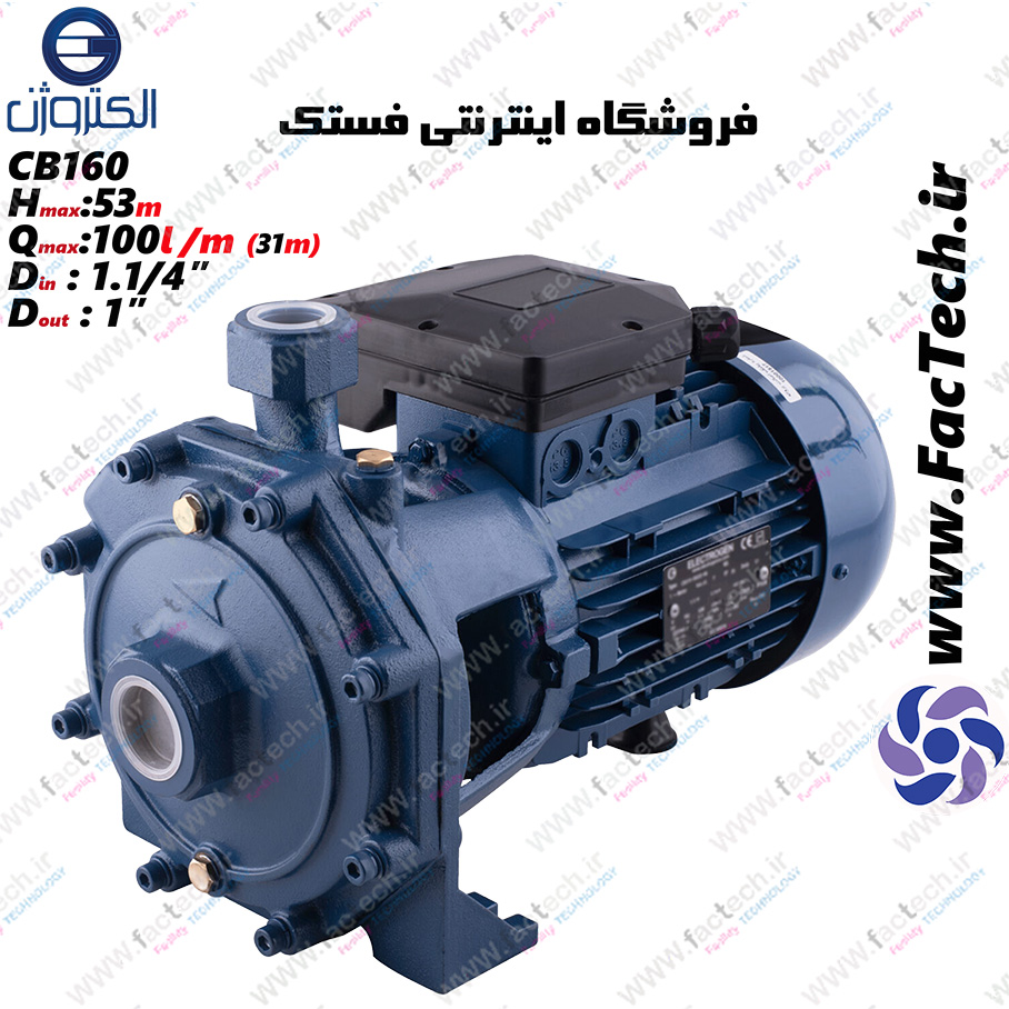 پمپ آب 1.5 ( یک و نیم ) اسب دو پروانه پروانه استیل الکتروژن مدل (CB(160 گارانتی شرکتی