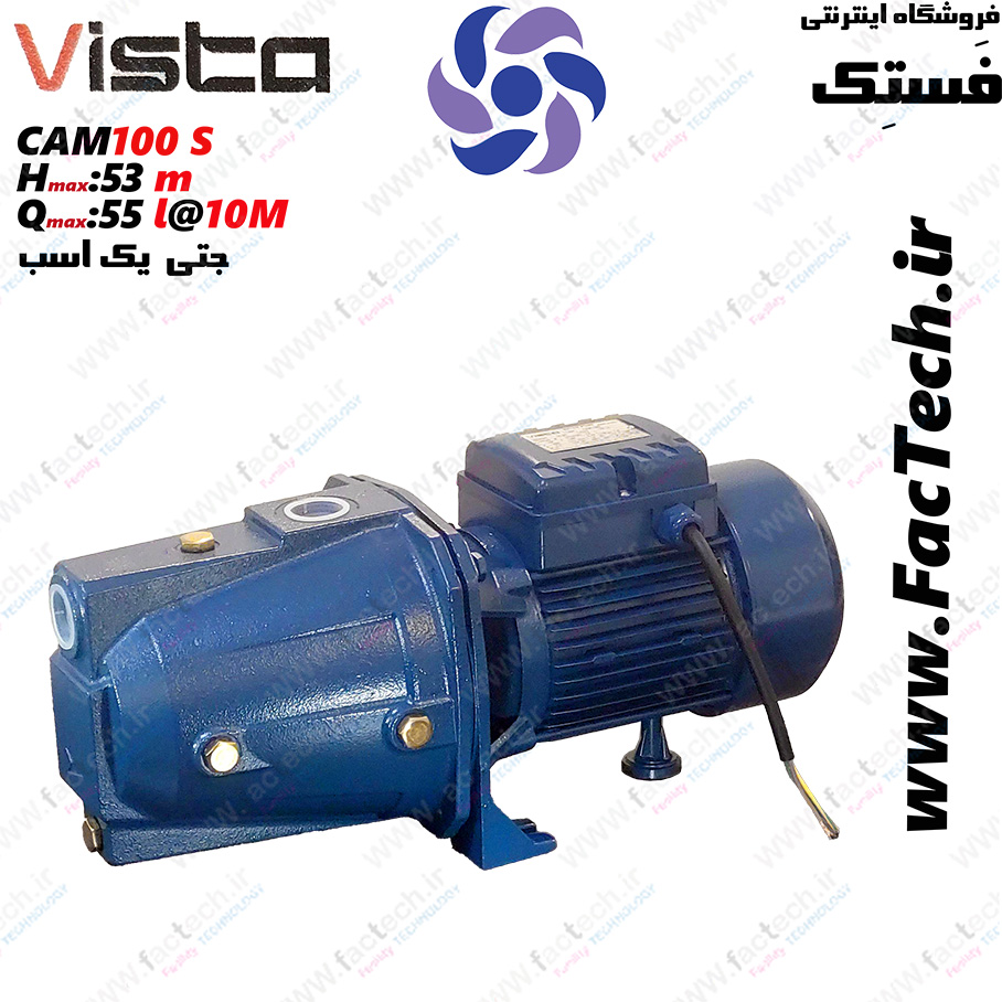 پمپ جتی یک اسب ویستا - JET-CAM100 S پروانه استیل- گارانتی یکساله هد 53 متر و دبی 55 لیتر در ارتفاع 10 متر