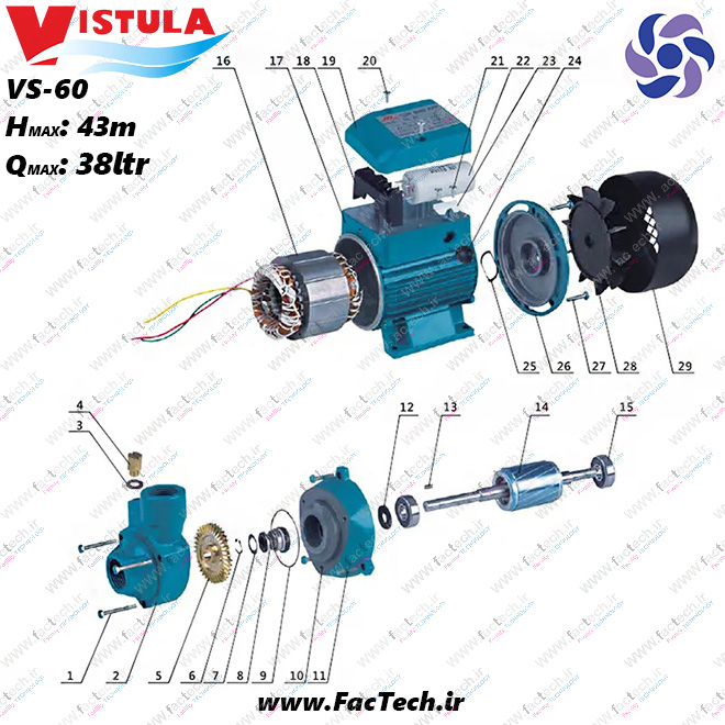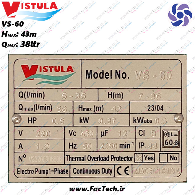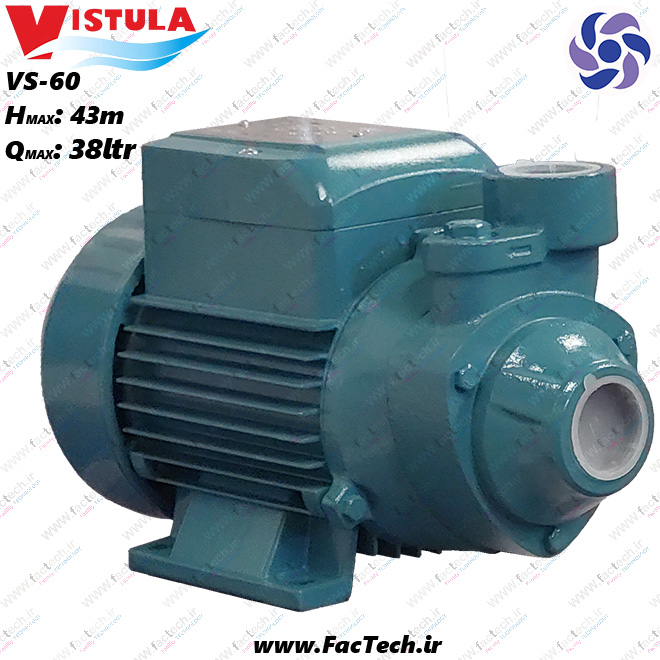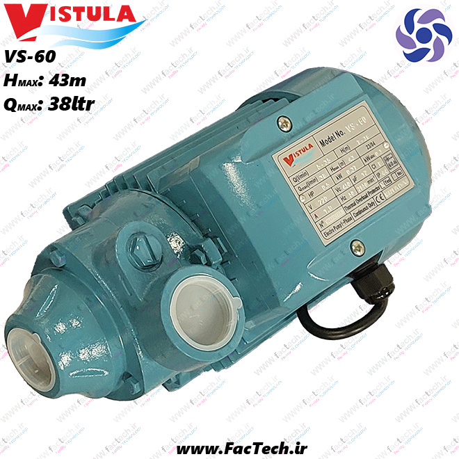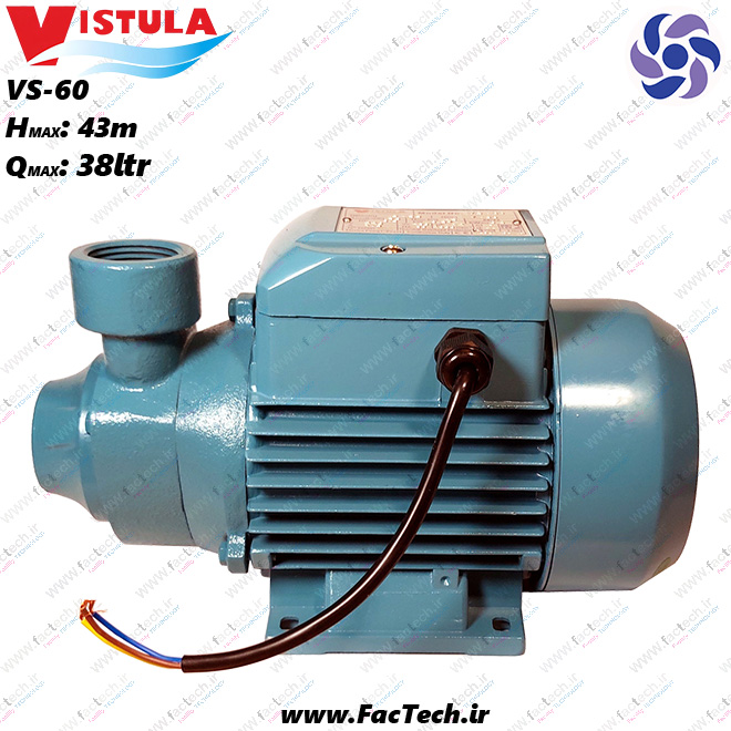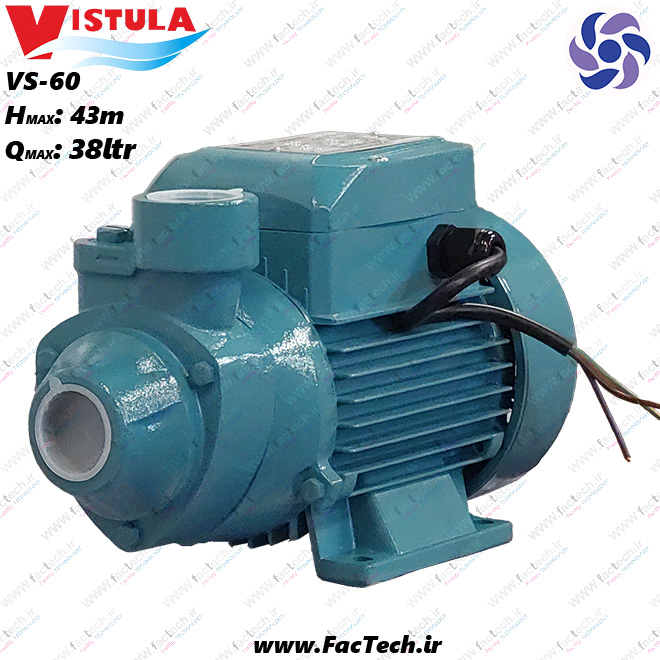 پمپ نیم اسب خانگی - معادل پمپ های Lowara-پرقدرت-کم صدا - ویستولا VS60 ( محیطی ) - با حداکثر هد 45متر (طبقه پنجم) - حداکثر دبی 38 لیتر بر دقیقه - سیم پیچ لاکی درجه یک - مس 100% - محافظ حرارتی - شفت استیل - آنتی جام - گارانتی یک ساله تولید کننده - بالاترین کیفیت فنی و تکنولوژی روز