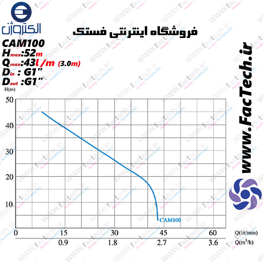 حداکثر آبدهی: 43 لیتر بر دقیقه در ارتفاع 3 متر