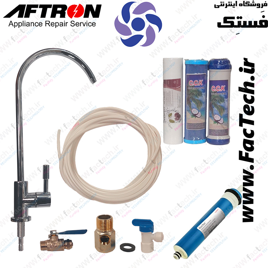 ممبران فیلمتک 13 لایه ، فیلتر های 3 مرحله اول PP و دوم پری کربن و سوم پست کربن درجه یک ، پمپ سنگین هندی درجه یک ، هوزینگ های دو واشره ، شیر برداشت اهرمی درجه یک و شلنگهای بهداشتی ، های پرژر و لو پرژر و شیر برقی درجه یک تضمینی به همراه شیر ورودی فلزی و تبدیل 3 راهی استیل ، با گارانتی یکساله لوازم برقی.
