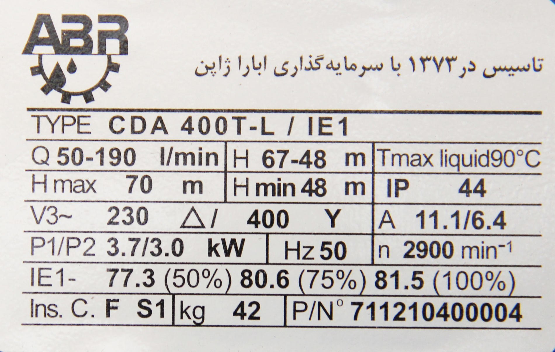 قطر لوله ورودی: 1.1/4 اینچ